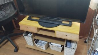 トリマーで、円形の溝を掘る|テレビ台の改造