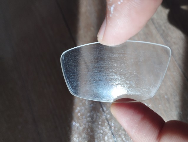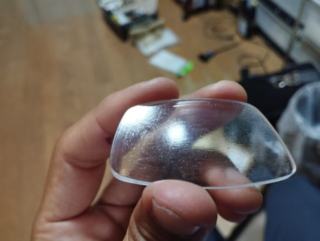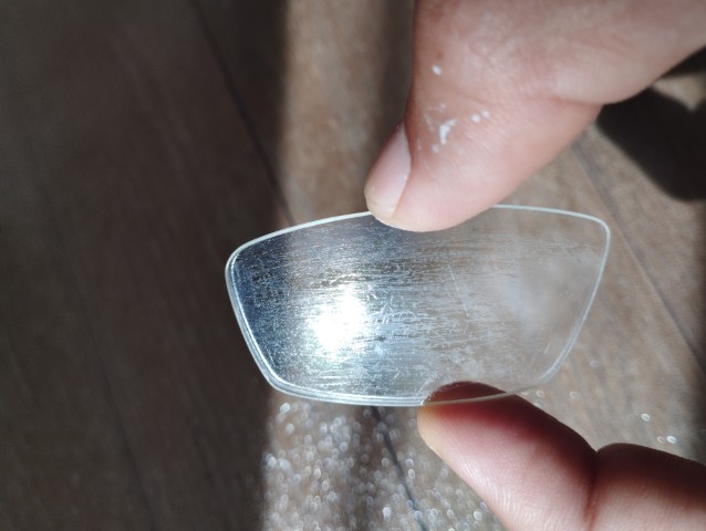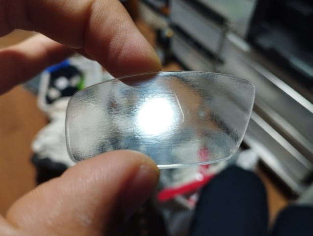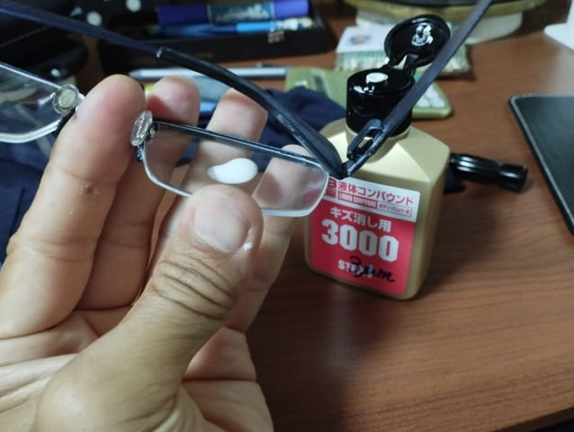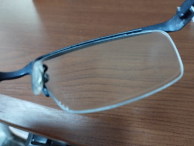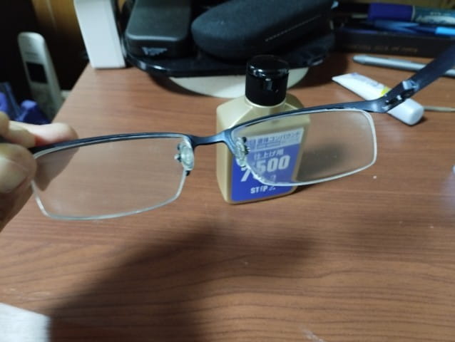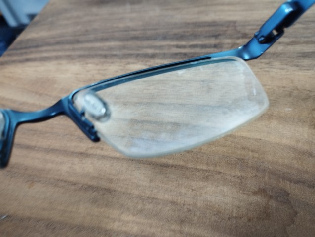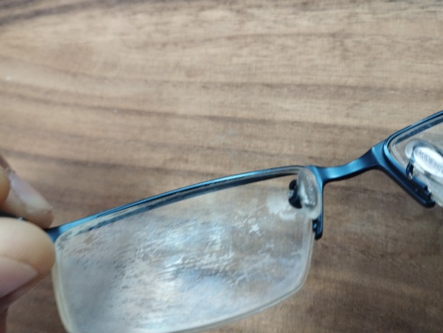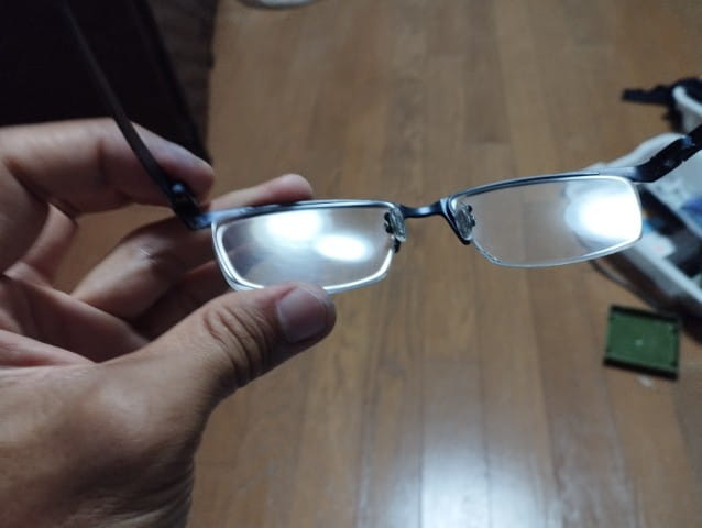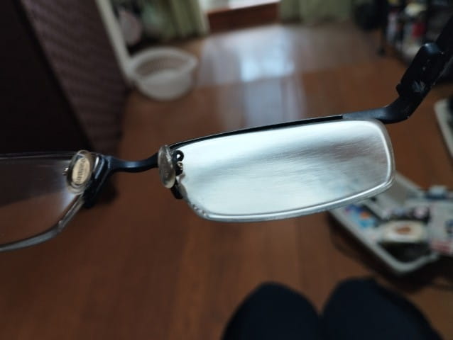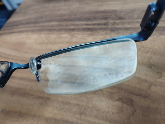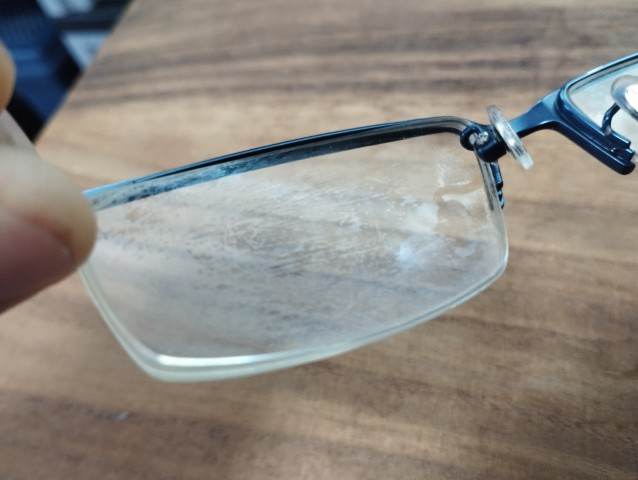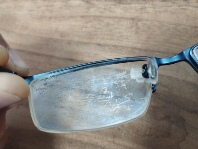 だいぶきれいになったのですが、リペア後のメガネを掛けてみると、特にレンズの周辺部分が反射の影響か歪んで見える感じになります。