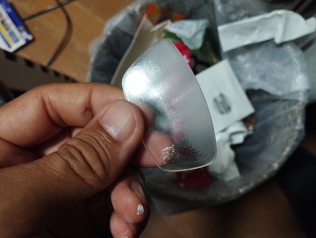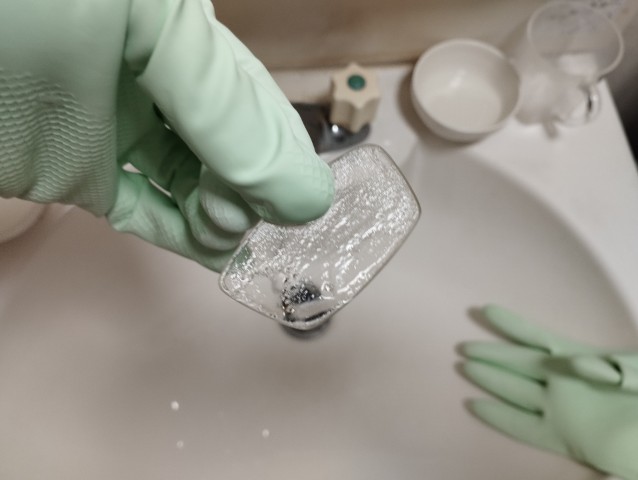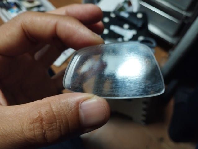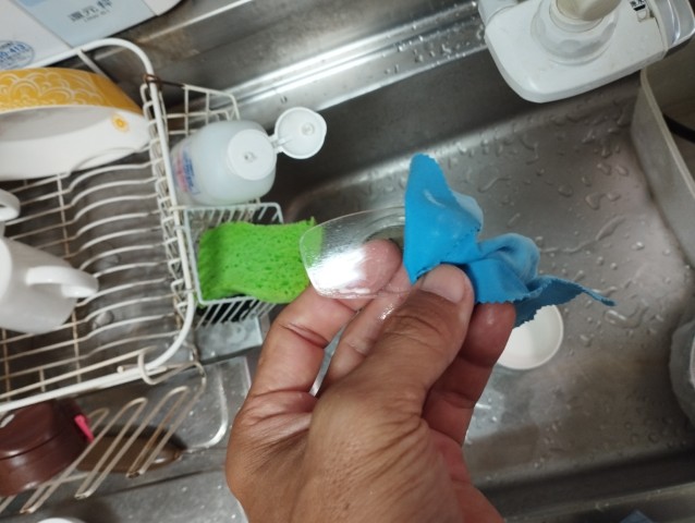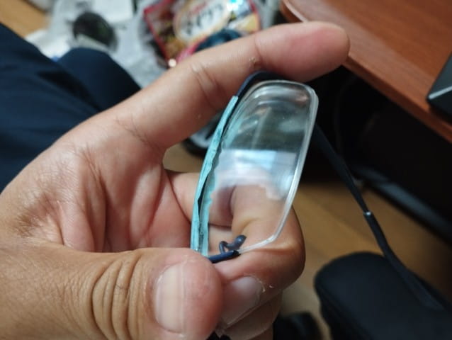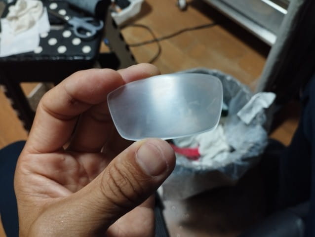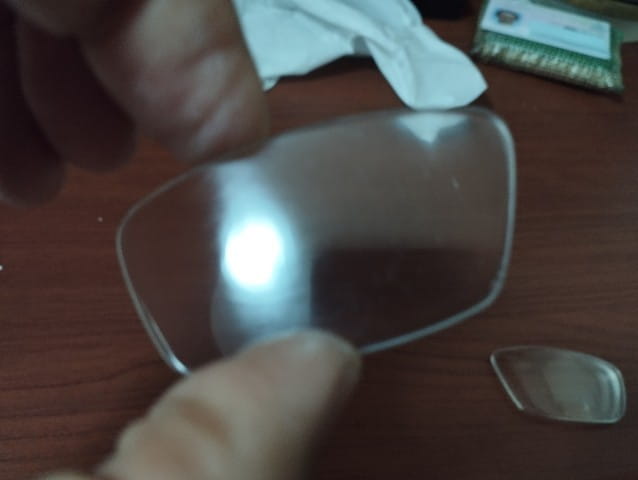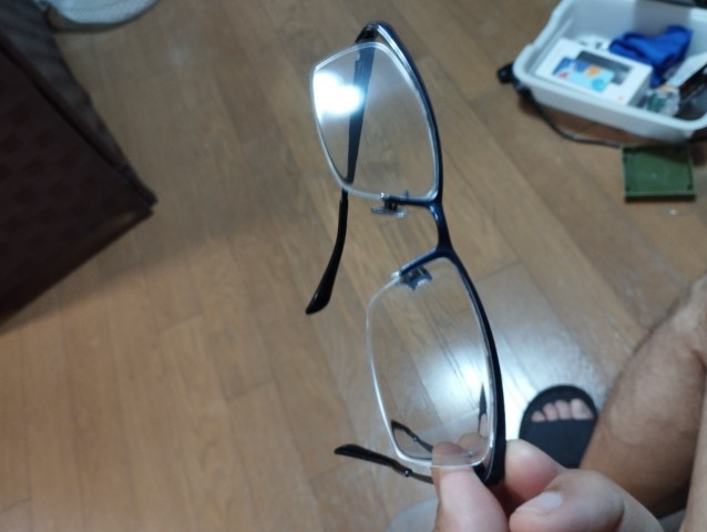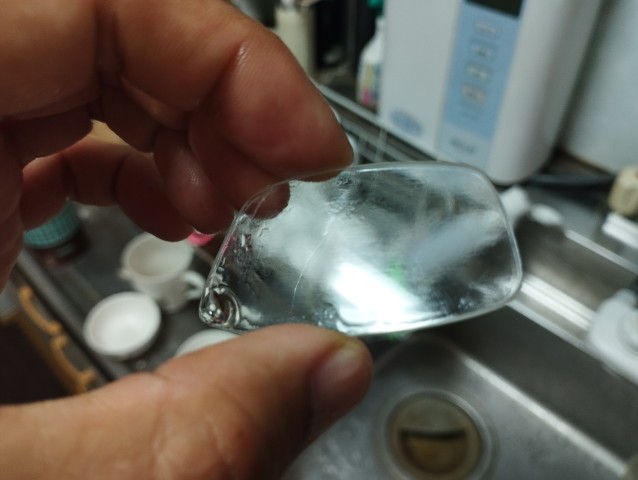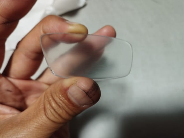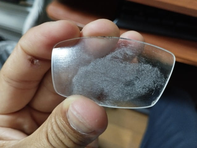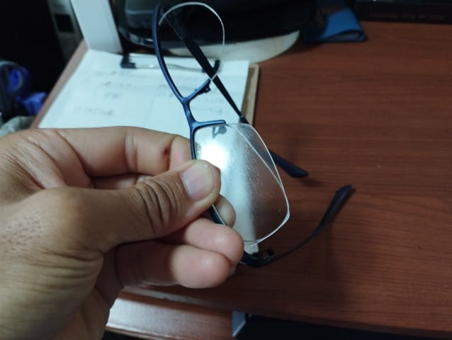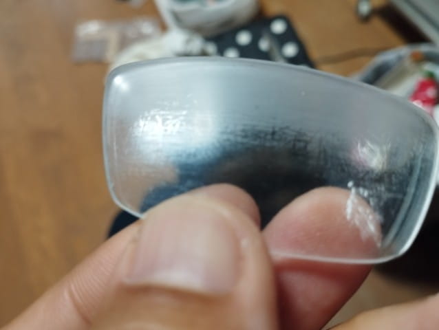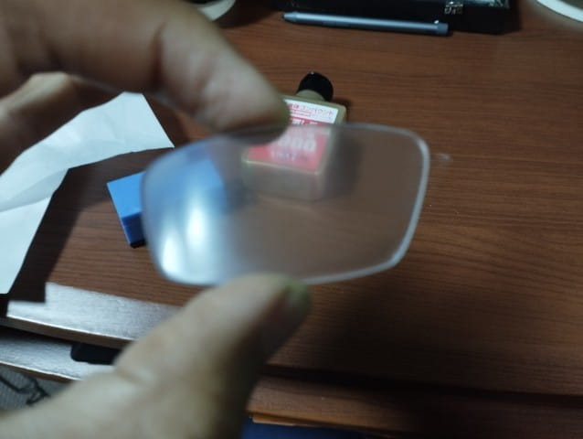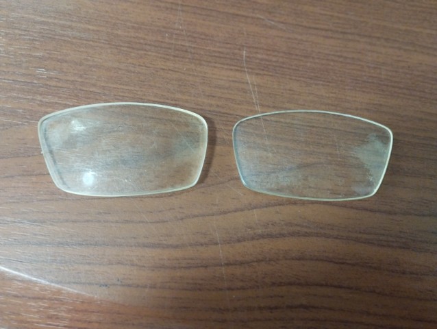 だいぶきれいになったのですが、リペア後のメガネを掛けてみると、特にレンズの周辺部分が反射の影響か歪んで見える感じになります。