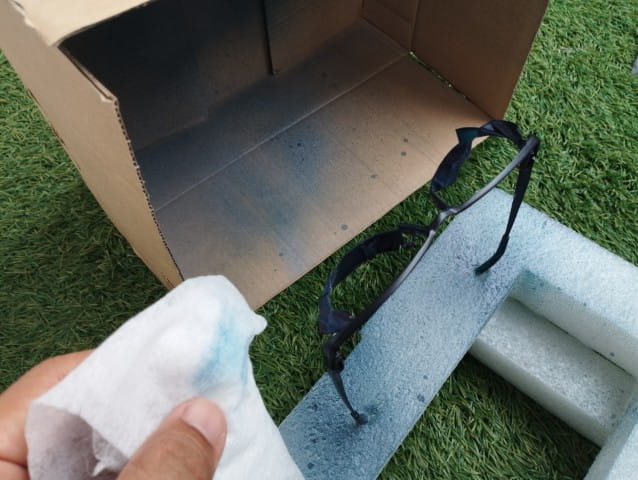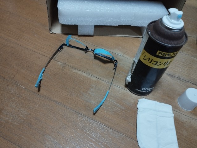 さて、そんなこんなで、メガネフレームに「染めGoro」での着色スプレーで塗装してみることにしました。