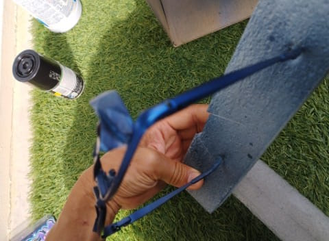 元々のフレームの色は、紺色。金属へのスプレー塗装として有名なのが「染めQ」というスプレー缶。