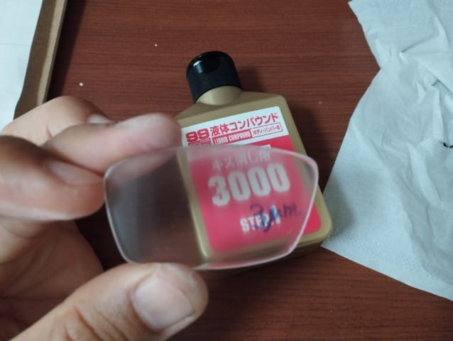 欠けている部分をよく見ると、プラサフごと欠けてしまっているので、やはり自動車のボディ用のプラサフでは粒度が粗かったのかもしれませんし、もっと厚塗りしておけば良かったのかもしれません。